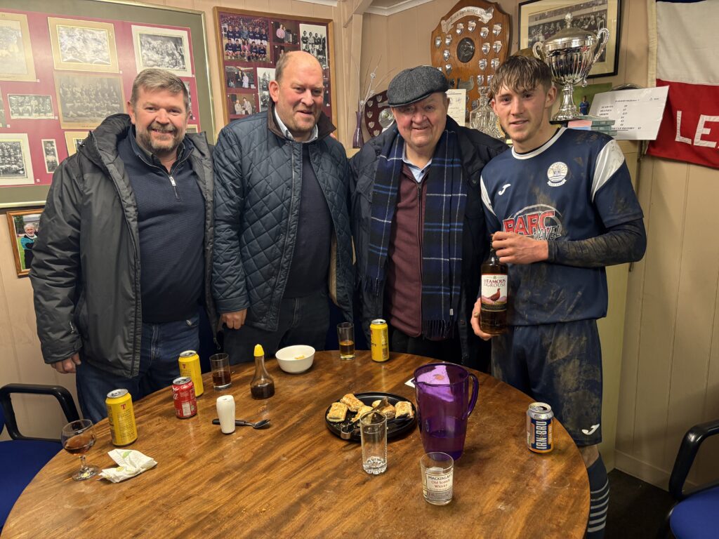 Kyle Mitchell getting his award of Sponsors Decla Rennie and Derick Pearce