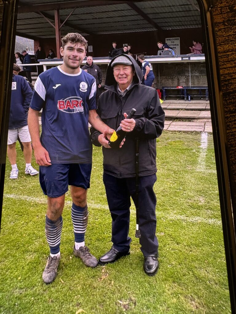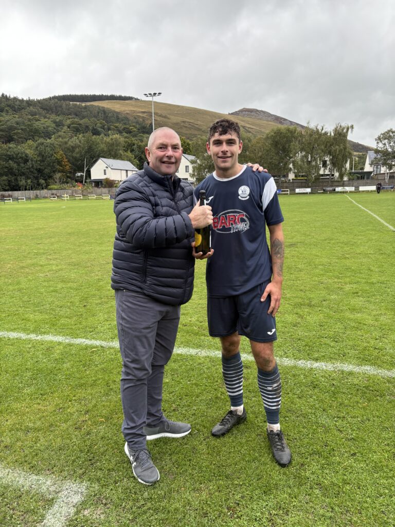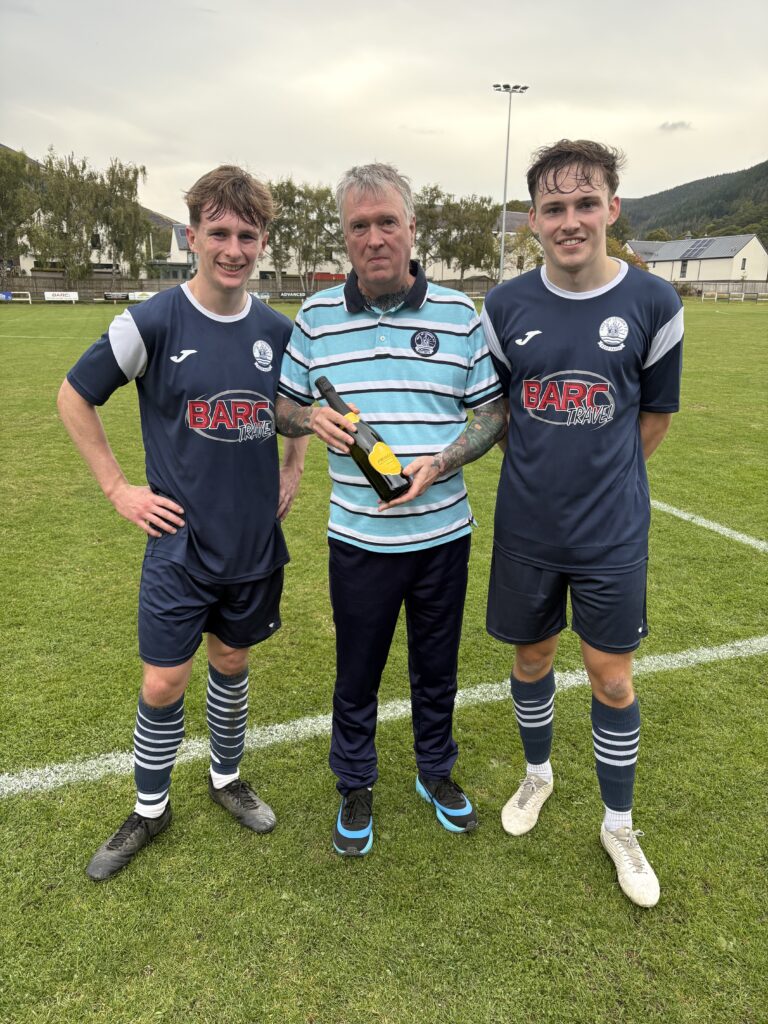 Kyle Mitchell getting his award of Sponsors Decla Rennie and Derick Pearce