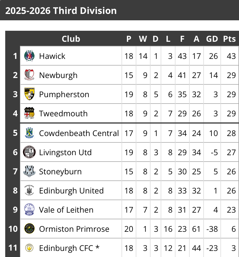 East of Scotland Third Division League Table