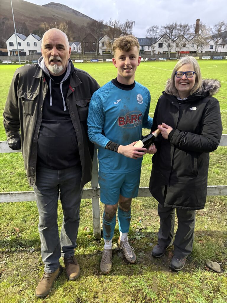 Kyle Mitchell getting his award of Sponsors Decla Rennie and Derick Pearce